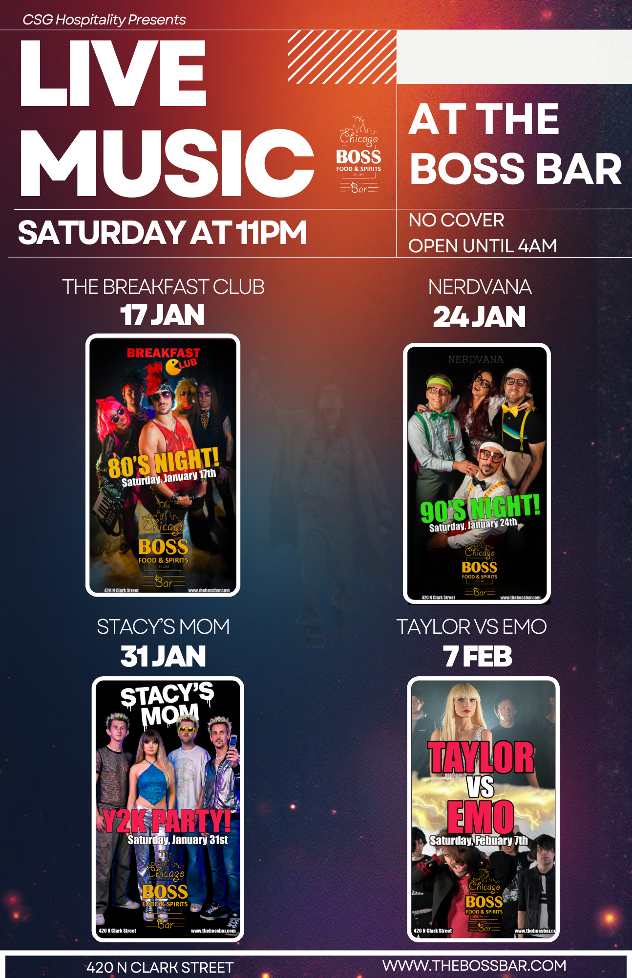 The Boss Bar was established in 1987. We are located at the corner of Clark and Hubbard in Chicago’s premier River North neighborhood.